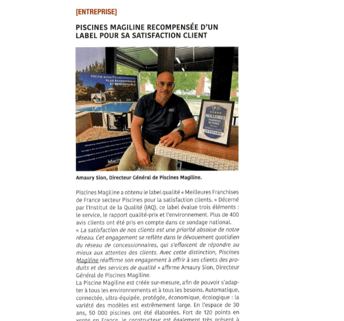 Piscines Magiline wird seit 2014 für sein Wachstums- und Innovationspotenzial anerkannt.
